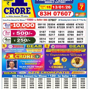 Dear Lottery Chart 6 PM Result – 22/08/2025 | Latest Dear Lottery Chart August 22, 2025 Leave a Comment on Dear Lottery Chart 6 PM Result – 22/08/2025 | Latest Dear Lottery Chart Share: XFacebookPinterestRedditVKDiggLinkedinMix Related Articles 0 97 Dear Lottery Chart 6 PM Result – 07/08/2025 | Latest Dear Lottery Chart 0 12 Dear Lottery Chart Today 6 PM 13/01/2026 | Dear Result Chart Evening 0 73 Dear Lottery Chart 6 PM Result – 14/09/2025 | Latest Dear Lottery Chart 0 75 Dear Lottery Chart 6 PM Result – 20/10/2025 | Latest Dear Lottery Chart