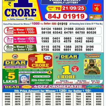 Dear Lottery Chart 6 PM Result – 26/09/2025 | Latest Dear Lottery Chart September 26, 2025 Leave a Comment on Dear Lottery Chart 6 PM Result – 26/09/2025 | Latest Dear Lottery Chart Share: XFacebookPinterestRedditVKDiggLinkedinMix Related Articles 0 42 Dear Lottery Chart 6 PM Result – 22/08/2025 | Latest Dear Lottery Chart 0 53 Dear Lottery Chart 6 PM Result – 10/08/2025 | Latest Dear Lottery Chart 0 38 Dear Lottery Chart 6 PM Result – 24/08/2025 | Latest Dear Lottery Chart 0 14 Dear Lottery Chart 6 PM Result – 05/10/2025 | Latest Dear Lottery Chart