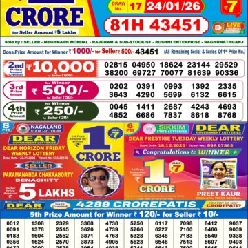 Dear Lottery Chart Today 6 PM 24/01/2026 | Dear Result Chart Evening