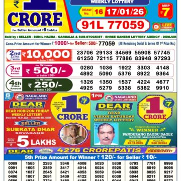 Dear Lottery Chart Today 6 PM 17/01/2026 | Dear Result Chart Evening
