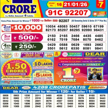 Dear Lottery Chart Today 6 PM 21/01/2026 | Dear Result Chart Evening