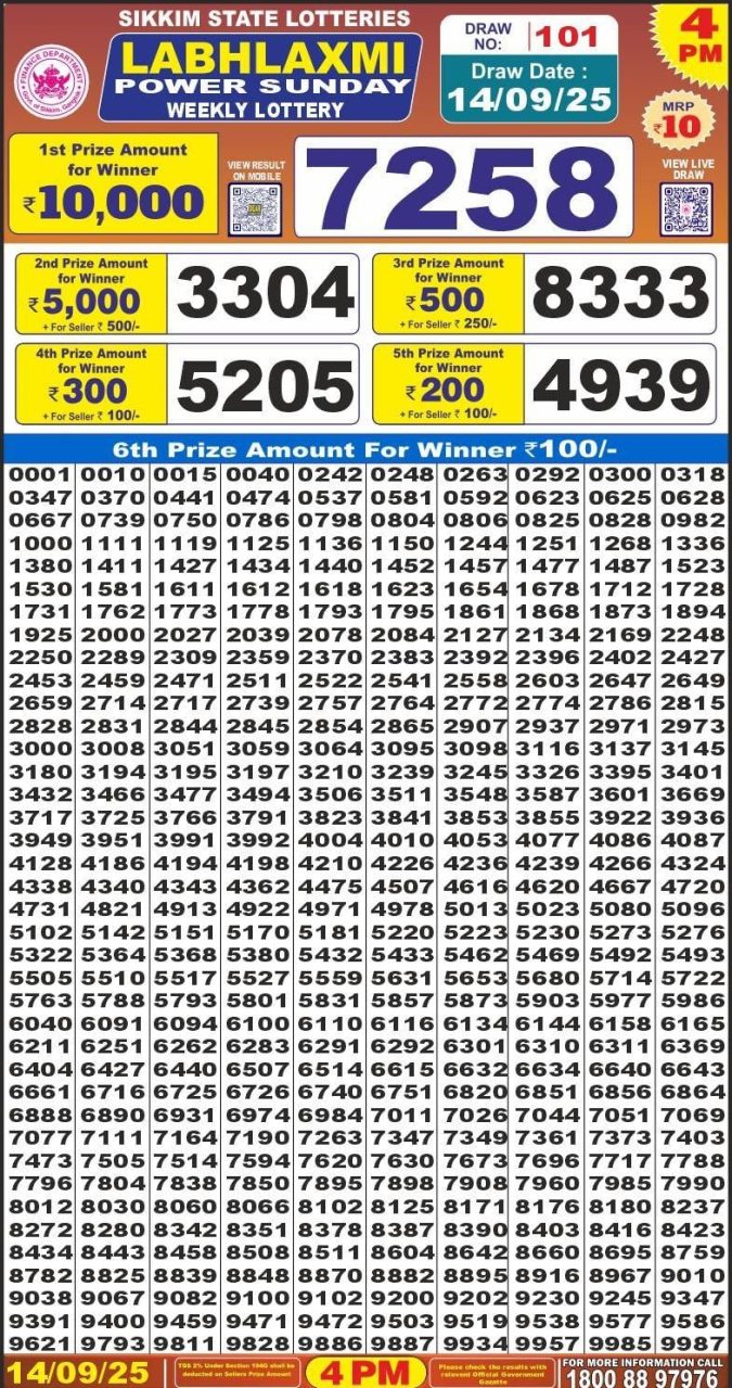 Labh Laxmi Dear Lottery Chart 4 PM Result – 14/09/2025 | Dear Lottery Chart Today