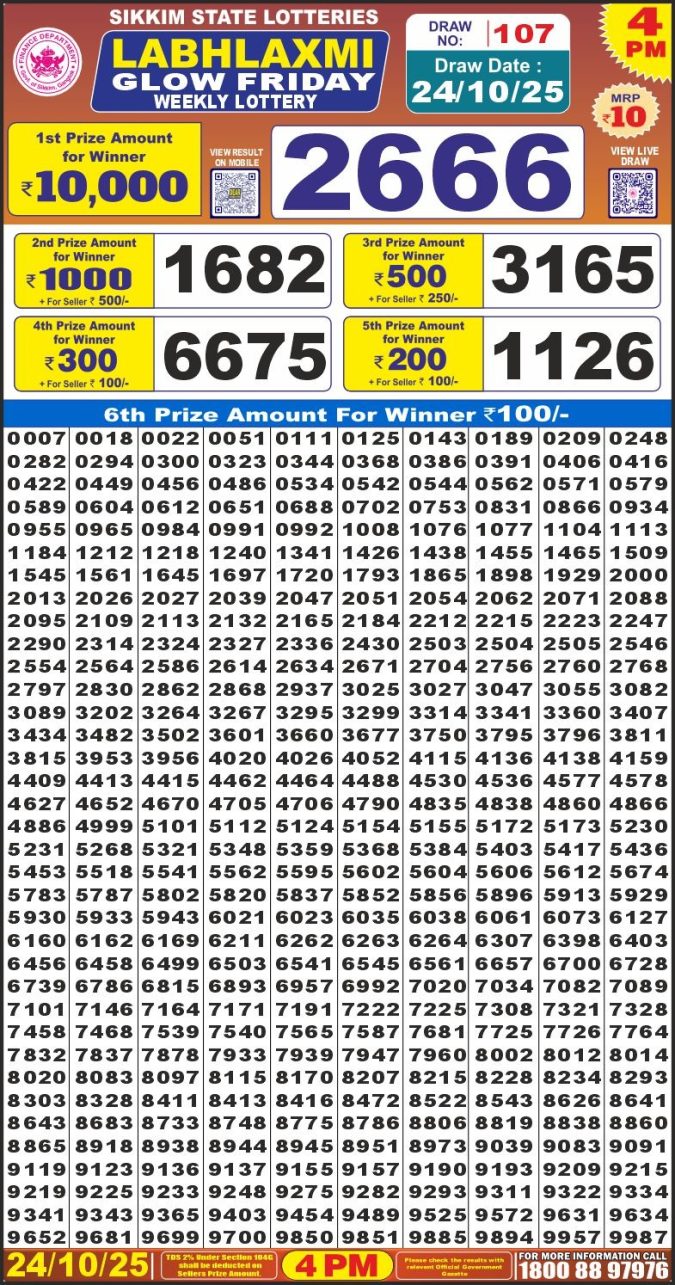 Labh Laxmi Dear Lottery Chart 4 PM Result – 24/10/2025 | Dear Lottery Chart Today
