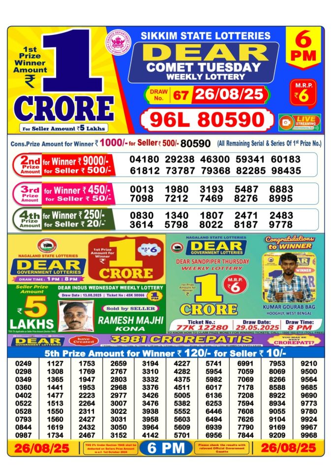 Dear Lottery Chart 6 PM Result – 26/08/2025 | Latest Dear Lottery Chart